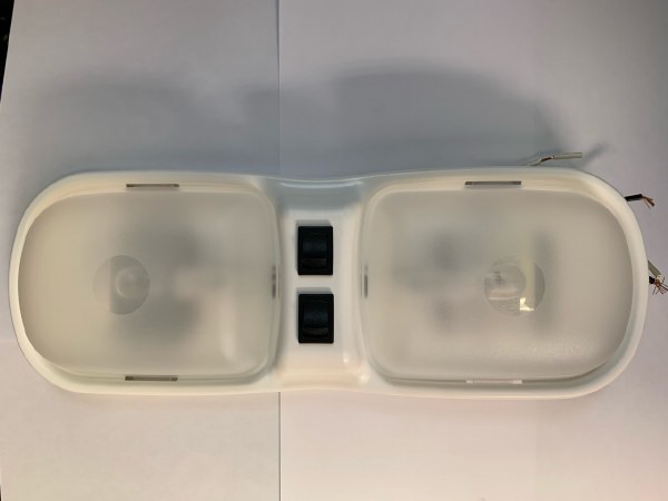 Dual Interior Dome Lights with Switches Bargman #75 Series Oval style double optic dome RV light with on/off switches Removeable snap-on clear polycarbonate lenses