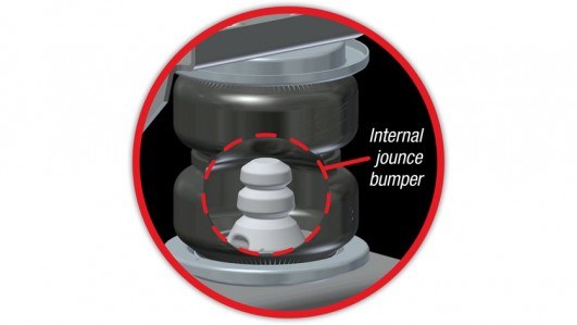 The closed-cell urethane foam jounce bumper inside the air spring provides a cushion of air that absorbs shock, eliminates harsh jarring on rough roads and protects vehicles carrying heavy loads. Never bottom out again with the ULTIMATE!