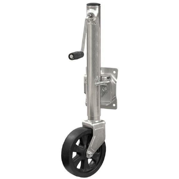 Swivel bracket allows jack to fully swing up and out of the way for travel
