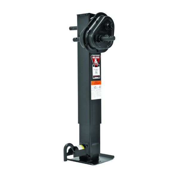 The First 2-Speed Gearbox Designed with a Drop Leg Jack in Mind. BULLDOG's 2-speed 12,000 lb. support capacity square jack makes cranking easier when fully loaded and faster when unloaded. In low gear, the ratio delivers full lifting power at a super-smooth, easy-lifting 27 turns per 1" (planetary) and 29 turns per 1" (traditional) of travel. In high gear, the cranking ratio is a speedy 9 turns per 1" of travel, the fastest in its weight class.