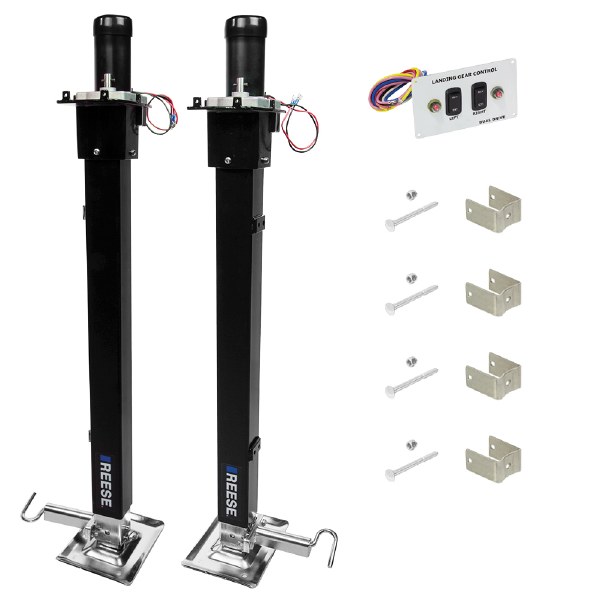 Reese RV Jack - 500708 Quickly and easily raises, levels and supports your fifth-wheel trailer or RV with this powerful pair of jacks. Powerful high-speed electric motors operate independently for precise leveling and are capable of 9" of lift per minute.